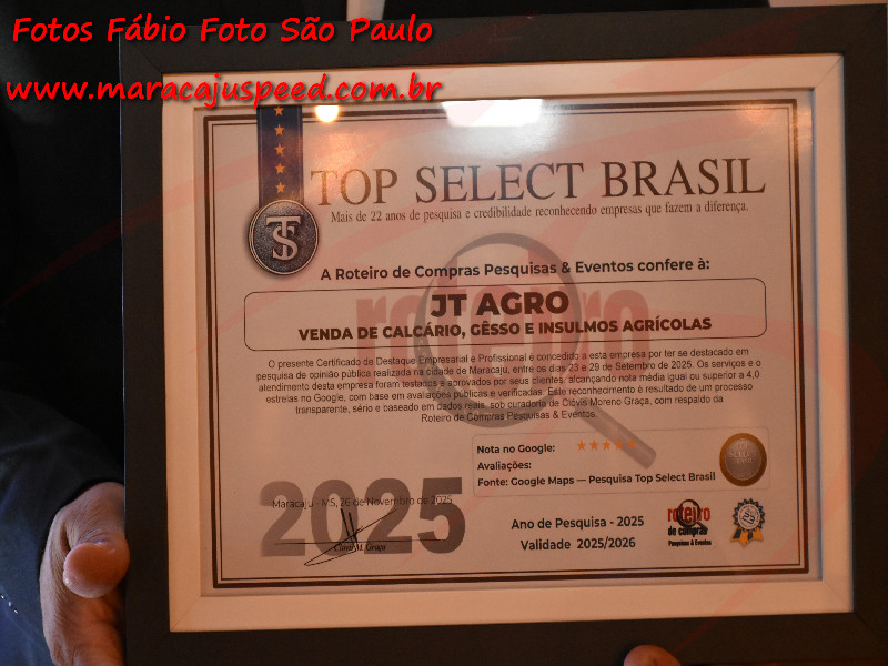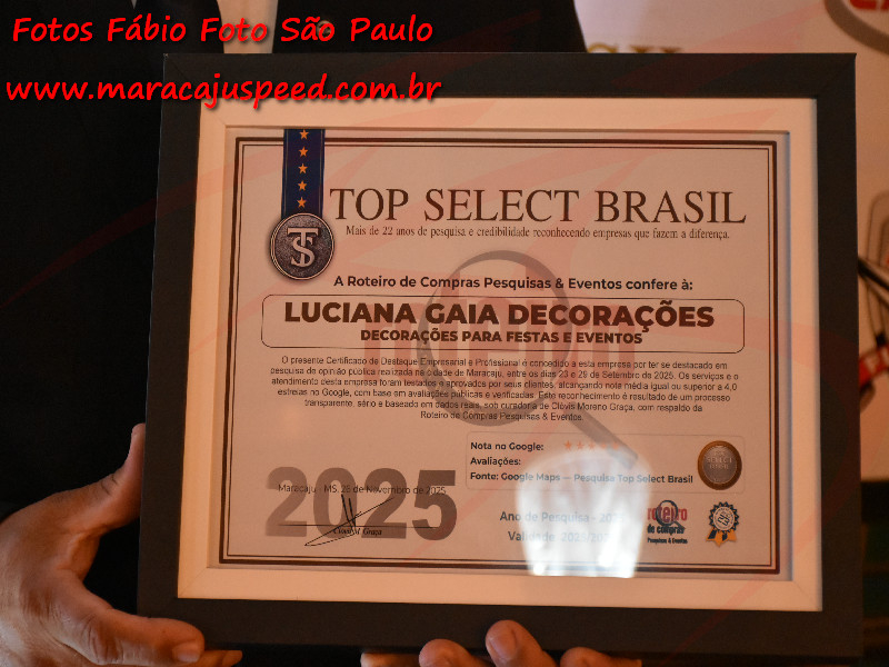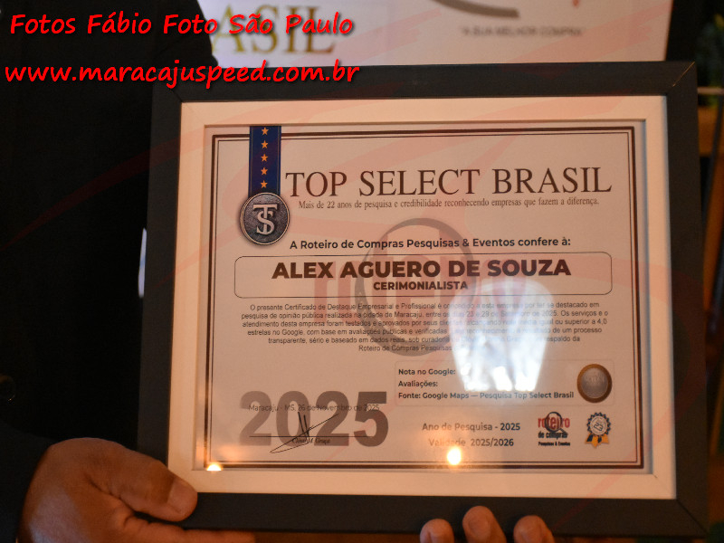 A cerimônia foi realizada em 26 de novembro, no Pesque Pague e Restaurante Jatobá, em Maracaju. O evento reuniu a elite empresarial local, profissionais de destaque e autoridades da comunidade, em uma noite de homenagens e celebrações. Para o diretor do evento, Clóvis Moreno Graça, o Top Select Brasil segue como uma vitrine essencial para quem se destaca no mercado.