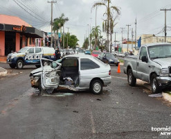 Acidente entre vários carros, registrado no início da manhã desta sexta-feira (5), chama a atenção de condutores na Rua Antônio Maria Coelho, no bairro Carandá Bosque, em Campo Grande.
