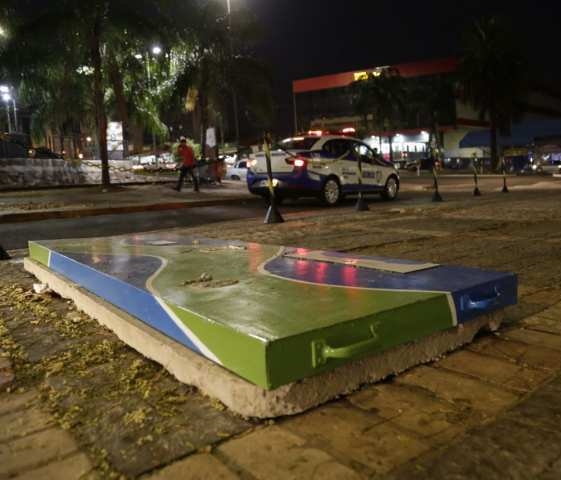 A escultura da capivara que estava instalada em frente ao Sesc Morada dos Baís, em Campo Grande, foi vandalizada na tarde desta sexta-feira (8), e totalmente quebrada. Segundo informações de testemunhas, as patas foram arrancadas do pedestal onde estava a obra de arte, assinada pelo artista plástico Cleir.