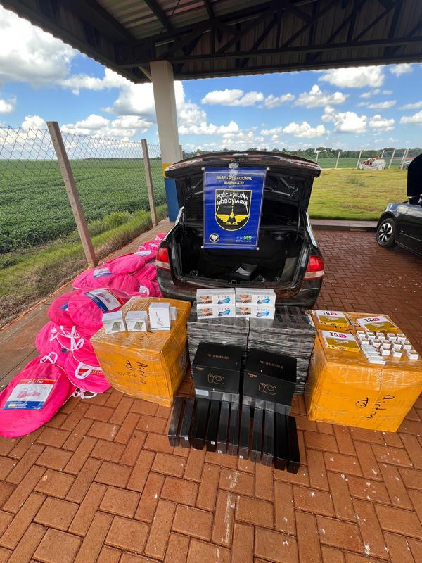 A ação ocorreu por volta das 13h, quando os policiais abordaram dois veículos de passeio. Durante a vistoria de segurança, a equipe constatou que ambos os automóveis transportavam mercadorias de origem estrangeira sem a comprovação de importação regular.