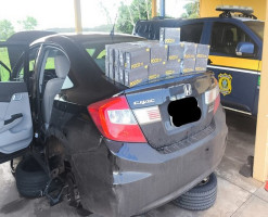 Em vistoria, os agentes identificaram que havia aproximadamente 500 quilos de maconha no Jeep e ainda descobriram que o veículo era roubado, sendo que placas clonadas foram encontradas no carro. Um Civic que servia como batedor da droga também foi abordado.