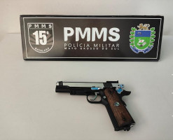 A ocorrência, porém, ganhou novos contornos quando a própria vítima, visivelmente exaltada, decidiu agir por conta própria. Pouco tempo depois da abordagem inicial, a mulher foi flagrada pela equipe policial caminhando no meio da via pública portando uma arma de pressão.