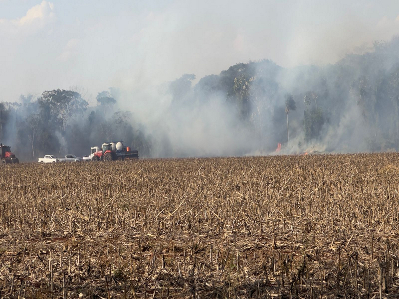 Infelizmente, o fogo já havia causado um dano considerável, consumindo vários hectares tanto da mata ciliar quanto da palhada da área de plantio.