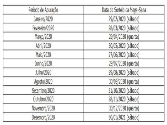 Os sorteios serão realizados com dezenas da Mega-Sena, da Caixa Econômica Federal. Não havendo sorteio do concurso da Mega-Sena no dia especificado devem ser utilizadas as dezenas sorteadas no concurso da Mega-Sena imediatamente seguinte.