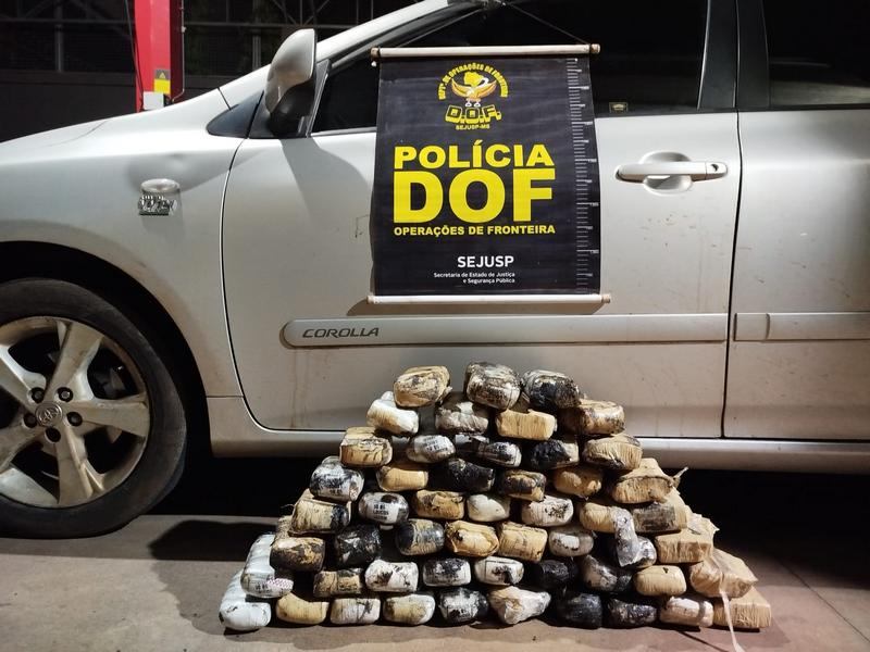 Ao vistoriarem os pneus do carro, os militares notaram alterações e odor característico de entorpecentes. Os pneus foram desmontados, revelando 44 peças de haxixe dry e oito peças de maconha. Questionado, o autor afirmou que pegou o veículo já preparado em Nova Andradina e o levaria até Bataguassu.
