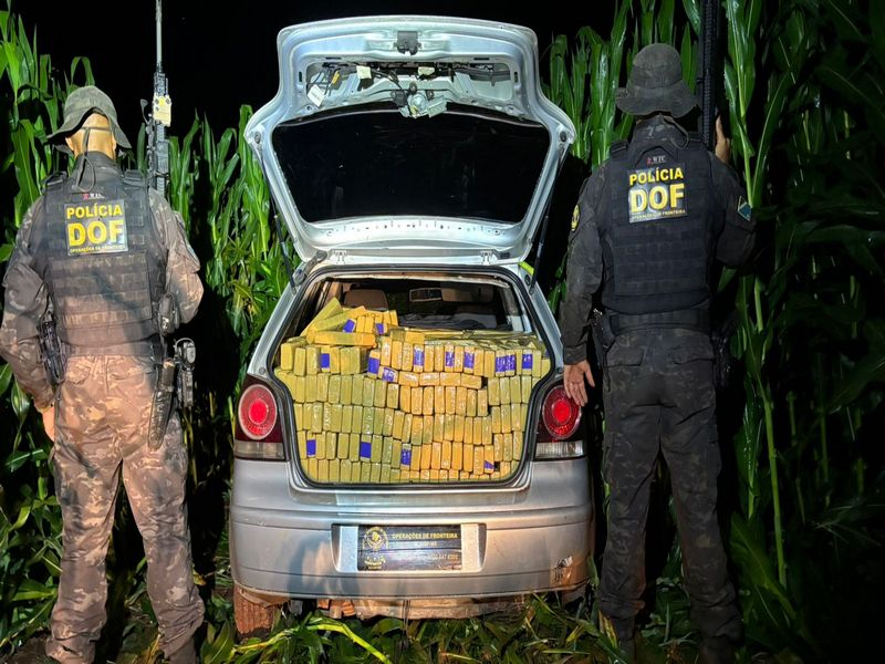 Uma perseguição em alta velocidade na madrugada de sábado (28) terminou com a apreensão de quase uma tonelada de maconha na região de Maracaju. Policiais do Departamento de Operações de Fronteira (DOF) interceptaram um carregamento de 972 kg da droga após o condutor de um VW Polo prata ignorar uma ordem de parada e fugir por uma plantação de milho.