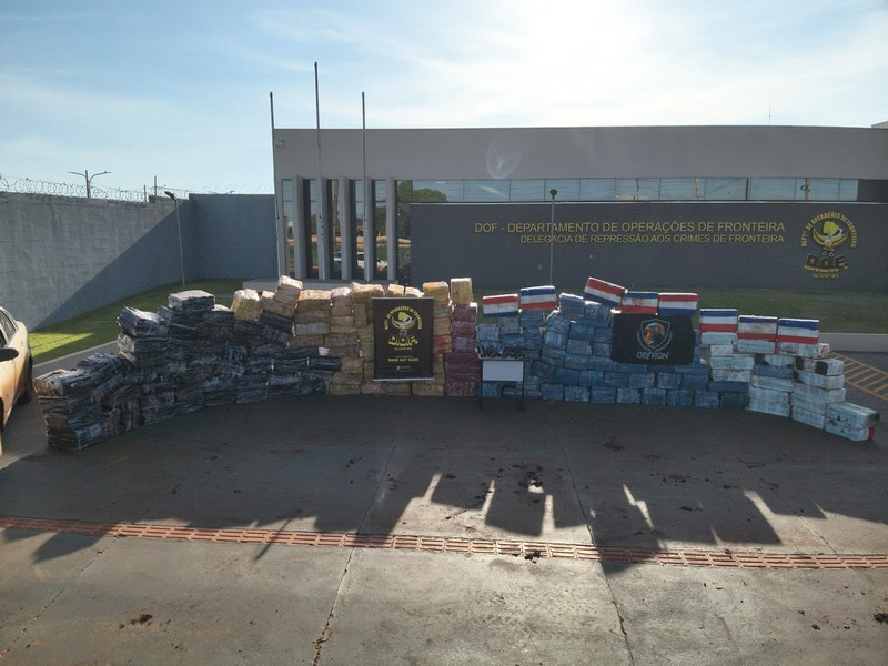 Uma operação conjunta entre o DOF (Departamento de Operações de Fronteira) e a DEFRON (Delegacia de Repressão aos Crimes de Fronteira) resultou, na madrugada deste domingo (1), na prisão de sete pessoas e na apreensão de 4 toneladas de maconha, além de sete pistolas.
