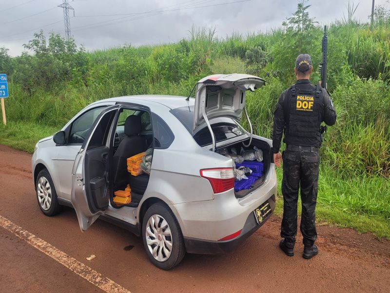 Os policiais faziam bloqueio na MS-379, quando abordaram a condutora do veículo. Durante vistoria, foram encontrados diversos tabletes de maconha no interior do automóvel e no porta-malas.