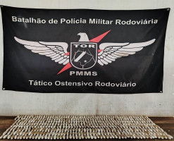 A equipe do Tático Ostensivo Rodoviário (TOR), do Batalhão de Polícia Militar Rodoviária (BPMRv), realizou, na tarde de sábado (31/01), uma grande apreensão de entorpecentes durante policiamento ostensivo e bloqueio na rodovia MS-164, na altura do km 29.