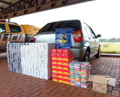 No interior do veículo, foram encontradas mercadorias de origem estrangeira sem qualquer tipo de comprovação fiscal. A carga era composta por 11 "bolas" de pneus, que totalizam aproximadamente 55 unidades, e 120 pacotes de cigarros da marca FOX. A prática configura o crime de descaminho.