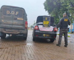 A equipe se deslocou e flagrou o autor pulando a janela do imóvel. Com ele foi encontrado um alicate; uma faca, vários fios de cobre, quadro de barramento com 21 disjuntores, e peças de inox.