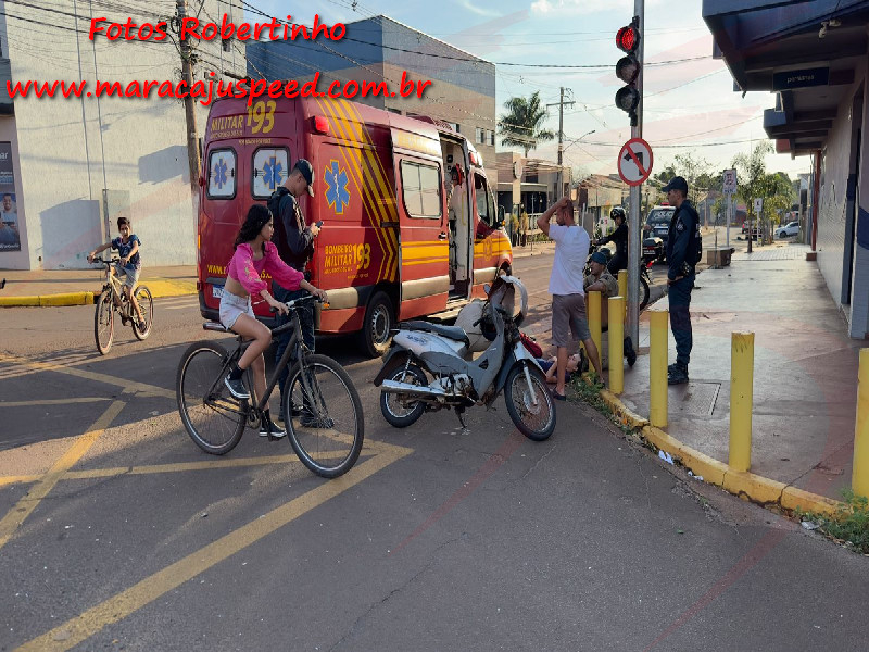 Um jovem de 18 anos sofreu uma fratura grave na perna esquerda após colidir a motocicleta que pilotava contra uma viatura da Polícia Militar no final da tarde de Domingo (21), em Maracaju. O rapaz não possuía habilitação e o veículo estava em situação irregular.