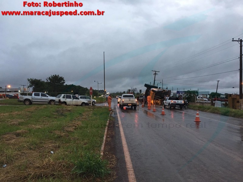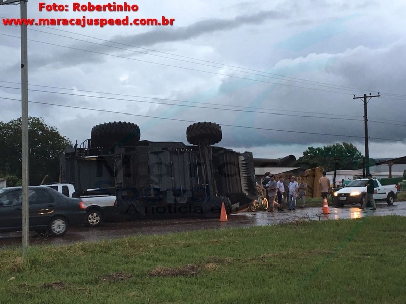 O fato ocorreu por volta das 17h25min na BR-267 saída para Jardim, o condutor do veículo relata que seguia pela referida rodovia e no momento em que deu início à uma conversão, visualizou que uma das rodas da colheitadeira levantou-se e saiu de cima do caminhão prancha, nesse momento então a colheitadeira veio a cair de cima do veículo, indo parar no acostamento da via.