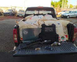 Foram apreendidos veículos e carretas, armas de grosso calibre como um fuzil AR 15.