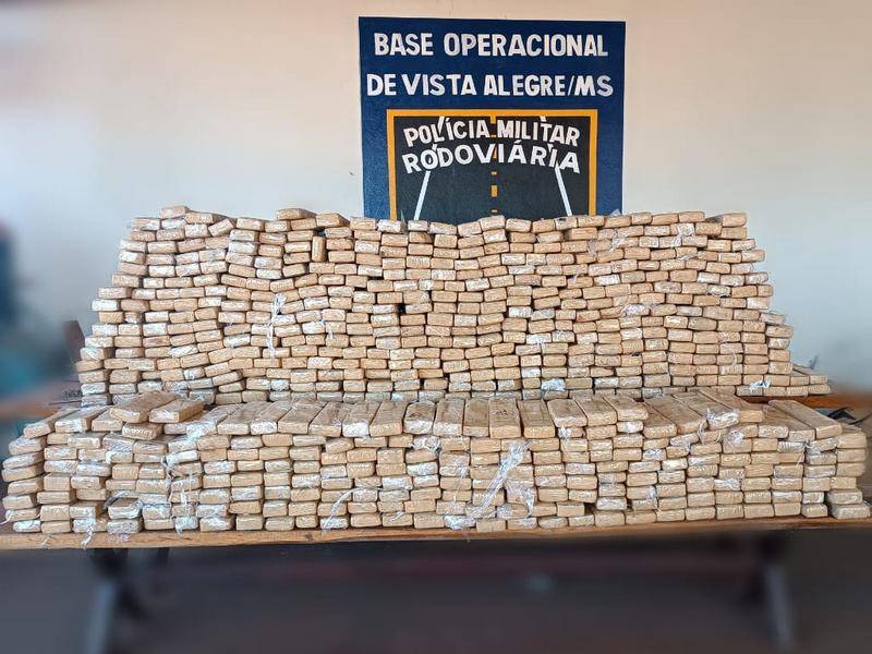 A equipe da PMR realizou acompanhamento tático ao suspeito, que adentrou a uma propriedade onde foi abordado, sendo logo observado que o veículo estava carregado com um grande carga de tabletes de sustância análoga à maconha, cobertos por um pano preto, que após pesagem totalizaram 592 kg do entorpecente.