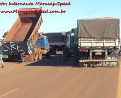 Alguns quilômetros à frente, a equipe localizou uma carreta abandonada SCANIA/R113 com placas de Campo Grande/MS, atrelado aos semirreboques também com placas de Campo Grande/MS.