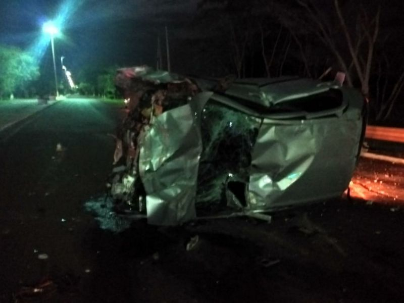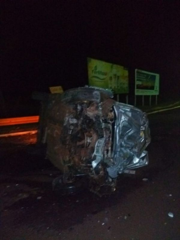 O veículo, que tem placas de Dourados, ficou totalmente destruído.