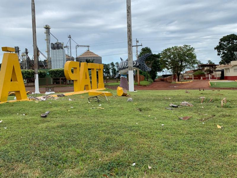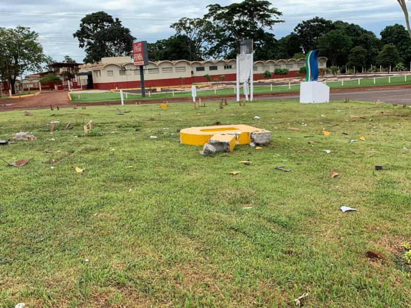 Duas letras do escrito na rotatória do Peixe, ficaram destruídas.