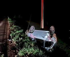 Antes de tombar o carro, motorista bateu contra um Ford Ka e um Chevrolet Prisma que estavam estacionados.