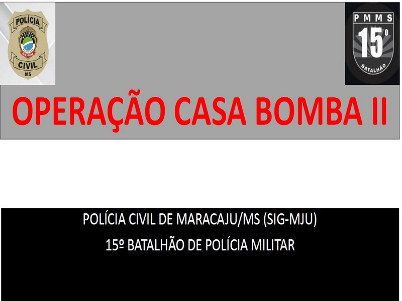 A Operação Casa Bomba II contou com apoio da Polícia Civil de Rio Brilhante, do 15º Batalhão de Polícia Militar, do Grupamento Aéreo (CGPA), do Batalhão de Choque e do Canil do 11º Batalhão.Os resultados foram considerados proveitosos pela Polícia Civil: