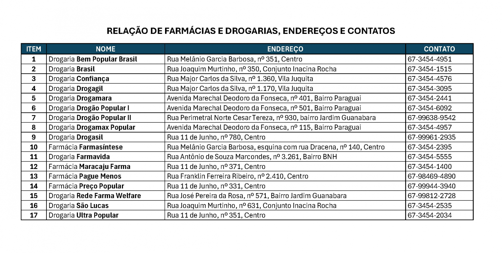 Plantões das Farmácias e Drogarias para o mês de Fevereiro/2026.