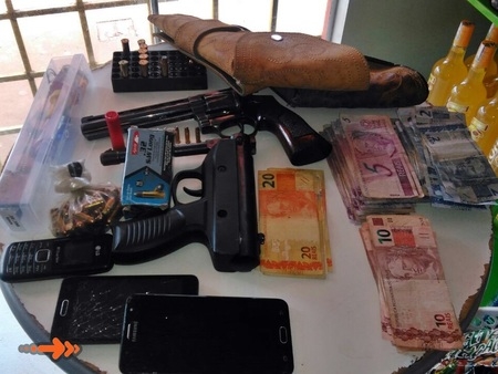 Em busca na conveniência a equipe policial acabou por encontrar munições dos calibres 32 (01 cartucho), 38 (2 cartuchos), 357 (6 cartuchos), 32 Aguila (30 cartuchos), uma pistola de ar comprimido sem marca modelo ou numeração, dois coldres, um revolver calibre 22 LR, municiado com seis cartuchos, além de 30 cartuchos de calibre 380, o mesmo utilizado no atentado a residência do Jornalista José Pereira do Site Sidrolândia News, ocorrido na madrugada de segunda-feira (12).