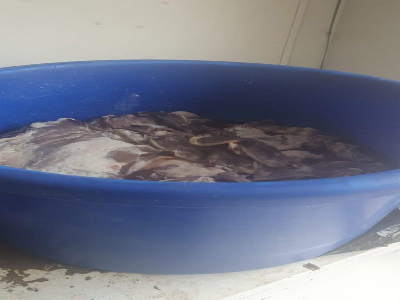 Também foram localizadas duas unidades de língua bovina, indicando possível abate clandestino. Ao todo, 82,05 kg de produtos impróprios para consumo foram apreendidos e descartados, entre carnes bovina, suína, de carneiro, massa para linguiça e frango.