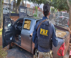 O primeiro veículo recuperado foi uma Toyota/Hilux. A caminhonete foi abordada na BR-267, ela utilizava placas falsas e possuía registro de furto, em São Paulo, desde a última quarta-feira (24). O motorista disse que viajaria até Dourados. Ele foi preso.