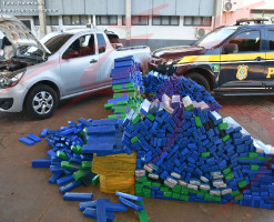 O condutor, os veículos e o entorpecente foram encaminhados à Polícia Federal de Dourados (MS).