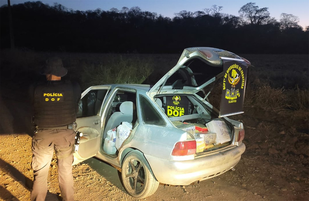 Policiais do Departamento de Operações de Fronteira (DOF) apreenderam, na manhã desta quinta-feira, um veículo Ford Escort de cor prata e placas de Botucatu (SP) carregado com 416 Kg de maconha e 2,5 Kg de skank.