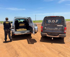 Policiais militares do Departamento de Operações de Fronteira (DOF) apreenderam, na tarde de sexta-feira (31) uma VW Parati de cor branca, com placas afixadas de Jardim (MS) carregada com 169 quilos de herbicida; 30 litros de inseticida; e 1.229 pacotes de cigarros.
