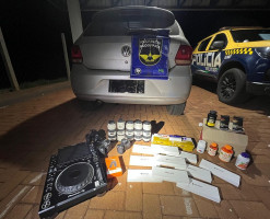 Durante vistoria aos veículos constatou-se que estavam com placas falsas, e que se tratavam de veículos roubados em São Paulo/SP. Diante dos fatos foi dada voz de prisão aos autores, que foram encaminhados à delegacia, e os veículos recuperados para serem devolvidos aos legítimos donos.